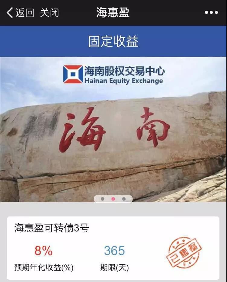 2月1日上午,海南股權(quán)交易中心在“?;萦本C合金融服務(wù)平臺(tái)正式上線?;萦赊D(zhuǎn)債3號(hào),總額度為300萬(wàn)元。2月2日晚,本次可轉(zhuǎn)債在35小時(shí)內(nèi)迅速完成所有認(rèn)購(gòu),完美收官。?;萦赊D(zhuǎn)債3號(hào)是“?;萦逼脚_(tái)目前發(fā)行的首...
