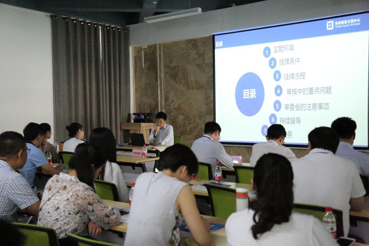 10月19日上午,海南股權(quán)交易中心舉辦2017年第二期會員機(jī)構(gòu)業(yè)務(wù)培訓(xùn)交流會,20家會員機(jī)構(gòu)代表參加交流會。股交中心執(zhí)行總經(jīng)理程棟才針對目前區(qū)域性股權(quán)市場的發(fā)展概況進(jìn)行了講解,介紹股交中心在政府支持方面的優(yōu)勢,...