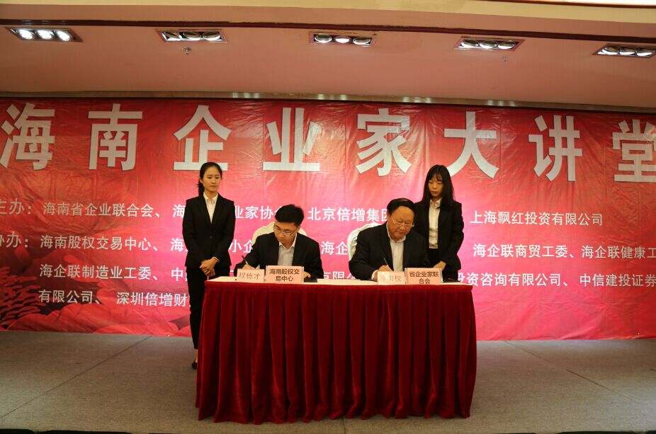 3月28日下午,2016“海南企業(yè)家大講堂”在海南寰島泰得大酒店舉行,海南股權(quán)交易與海南省企業(yè)聯(lián)合會 及海南省企業(yè)家協(xié)會共同簽署了戰(zhàn)略合作協(xié)議。三方合作,助力海南中小微企業(yè)發(fā)展。
