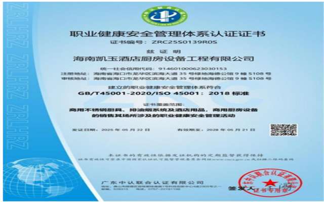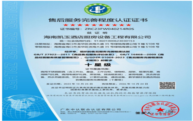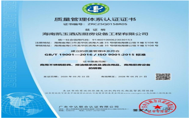 海南凱玉酒店廚房設(shè)備工程有限公司(以下簡(jiǎn)稱凱玉廚具或我司)成立于2013年,注冊(cè)資金2800萬,地處海南省海口市。歷經(jīng)多年發(fā)展,已在海南股權(quán)交易中心上市,是海南省行業(yè)中率先獲得十星級(jí)售后服務(wù)證書,通過ISO9001:2015質(zhì)量管理體系認(rèn)證、ISO14001:2015環(huán)境管理體系認(rèn)證、GB/T45001-2020職業(yè)健康安全管理體系認(rèn)證、AAA企業(yè)信用等級(jí)認(rèn)證、中國安全生產(chǎn)標(biāo)準(zhǔn)化一級(jí)企業(yè)認(rèn)證、中國廚房設(shè)備工程行業(yè)一級(jí)認(rèn)證、燃?xì)馊紵骶甙惭b維修能力一級(jí)認(rèn)證、采用國際標(biāo)準(zhǔn)認(rèn)證并由政府部門審查頒發(fā)證書的企業(yè)(詳見專業(yè)資質(zhì)文件),一般納稅人A級(jí)信用企業(yè)、海南省酒店與餐飲行業(yè)協(xié)會(huì)副會(huì)長單位、中國廚具行業(yè)十大品牌、中國著名品牌、2021年度中國國際飯店業(yè)優(yōu)質(zhì)廚房設(shè)備供應(yīng)商推薦品牌、2022年度中國飯店業(yè)高質(zhì)量發(fā)展設(shè)備供應(yīng)商品牌、酒店用品與設(shè)備供應(yīng)商等級(jí)認(rèn)證甲級(jí)企業(yè)、國家高新技術(shù)企業(yè)、專精特新企業(yè)、海南省專精特新中小企業(yè)證書。 本公司擁有自主產(chǎn)權(quán)辦公大樓、產(chǎn)品體驗(yàn)中心以及自主生產(chǎn)基地(位于海南省??谑旋埲A區(qū)城西鎮(zhèn)蒼嶧二路4號(hào),園區(qū)面積達(dá)1245平方米,購置行業(yè)內(nèi)一流生產(chǎn)加工設(shè)備),擁有多項(xiàng)產(chǎn)品專利技術(shù),創(chuàng)立了椰爐、椰灶兩大爐具自主品牌,主要為大型星級(jí)酒店、大型企事業(yè)單位、地產(chǎn)公司、餐飲企業(yè)等提供專業(yè)的廚房設(shè)備及排油煙系統(tǒng)供貨、安裝及設(shè)計(jì)服務(wù)。