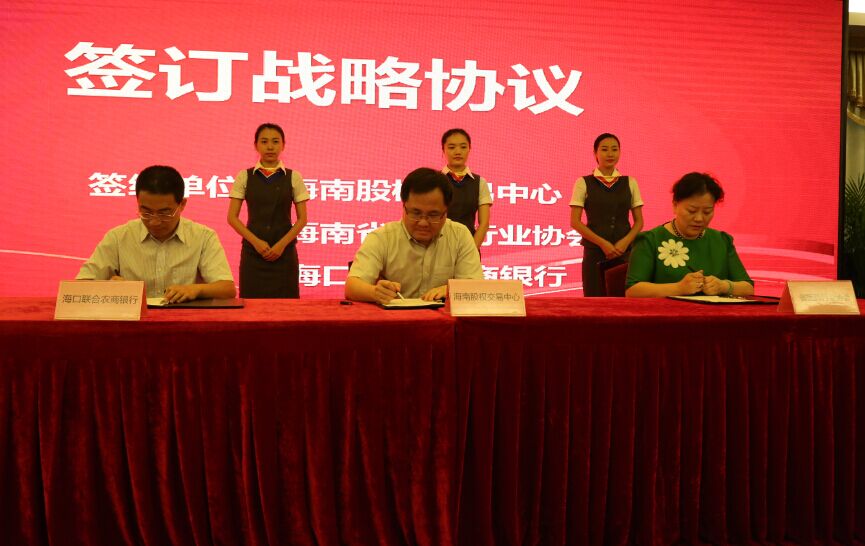 現(xiàn)場,海南股權(quán)交易中心、海南省醫(yī)藥行業(yè)協(xié)會和海口聯(lián)合農(nóng)商銀行簽署了三方戰(zhàn)略合作協(xié)議。結(jié)成戰(zhàn)略合作伙伴關(guān)系后,三方將利用各自平臺、資金等方面的優(yōu)勢,實現(xiàn)資源共享、優(yōu)勢互補。并在現(xiàn)有合作的基礎(chǔ)上,加強交流與協(xié)作,積極擴(kuò)大業(yè)務(wù)合作領(lǐng)域,共創(chuàng)發(fā)展機會。
