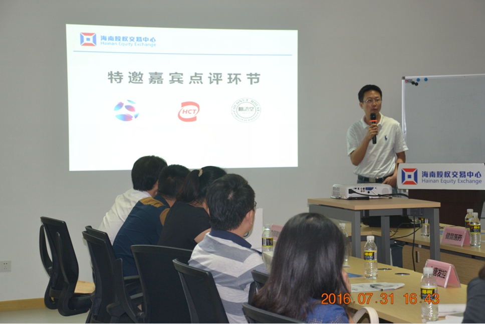 7月31日下午,海南股權(quán)交易中心第3期企業(yè)路演暨投融資對(duì)接會(huì),在海南老城經(jīng)濟(jì)開(kāi)發(fā)區(qū)海南生態(tài)軟件園B13號(hào)樓舉行。共有3家路演企業(yè),8家投資機(jī)構(gòu)及多家企業(yè)參加。