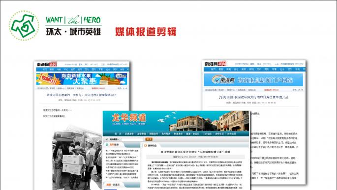 1、提升合作企業(yè)品牌形象,增加合作方內(nèi)部良性互動(dòng),增強(qiáng)企業(yè)內(nèi)部員工凝聚力,有利于企業(yè)文化建設(shè)。 2、WANT環(huán)太城市英雄微信公眾號:近7000粉絲,每期推送閱讀量2000至5000。 3、城市英雄·環(huán)小太:個(gè)人微信服務(wù)號,近2000用戶。 4、每周小區(qū)活動(dòng):每周會(huì)選擇四到六個(gè)小區(qū)做線下活動(dòng)。 5、上門舊衣回收服務(wù),每周200家左右,下周增加一組回收人員后業(yè)務(wù)量大概400至500一周。 6、50個(gè)綠色聯(lián)盟商家會(huì)員。 |