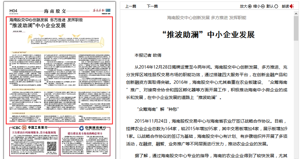 近日,證券導報以兩個版面整版報道海南股權交易中心兩周年,關注股交中心兩年以來的發(fā)展。