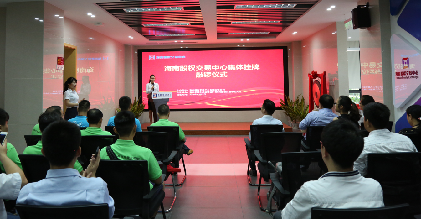 6月22日上午,海南股權(quán)交易中心企業(yè)集體掛牌儀式,在海南生態(tài)軟件園B13號(hào)股交中心一樓交易大廳舉行。3家企業(yè)現(xiàn)場(chǎng)集體掛牌展示板,股交中心副總裁程棟才出席掛牌儀式。