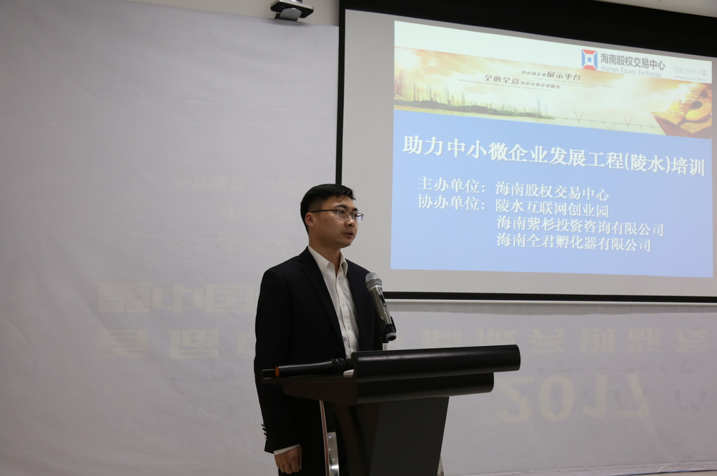 2月20日下午,海南股權(quán)交易中心主辦的“助力中小微企業(yè)發(fā)展工程”系列活動(dòng)——陵水站成功舉辦。本次活動(dòng)在陵水互聯(lián)網(wǎng)創(chuàng)業(yè)園、海南仝君孵化器有限公司、海南紫衫投資咨詢有限公司共同協(xié)辦下舉行,活動(dòng)旨在通過“助力中小微企業(yè)發(fā)展工程”使更多的中小微企業(yè)獲得發(fā)展。海南股權(quán)交易中心副總經(jīng)理程棟才,陵水互聯(lián)網(wǎng)創(chuàng)業(yè)園負(fù)責(zé)人、海南仝君孵化器有限公司運(yùn)營總監(jiān)陳烈,中國股權(quán)激勵(lì)研究院海南分院院長、深圳華一世紀(jì)海南分公司總經(jīng)理李瑞,海南銀行陵水支行、屯昌縣農(nóng)村信用社,以及50家企業(yè)家代表參加此次培訓(xùn)。