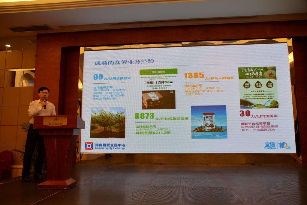 隨后,股交中心副總經(jīng)理程棟才就2017年度“眾籌海南,訂制農(nóng)旅”項(xiàng)目情況及具體內(nèi)容作了詳細(xì)的介紹,指出此次股交中心推出“眾籌海南,訂制農(nóng)旅”項(xiàng)目目的在于聚焦海南特色資源,推廣海南特色農(nóng)產(chǎn)品,促進(jìn)農(nóng)旅融合,進(jìn)一步推動企業(yè)發(fā)展。