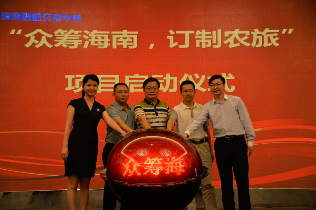 現(xiàn)場,省農(nóng)業(yè)廳信息中心主任林春、副主任陳大穗,省工商聯(lián)民營企業(yè)組織工作處副處長陳賢敏,股交中心副總經(jīng)理吳惠玉、程棟才按下啟動球,共同啟動2017年度“眾籌海南,訂制農(nóng)旅”項(xiàng)目。