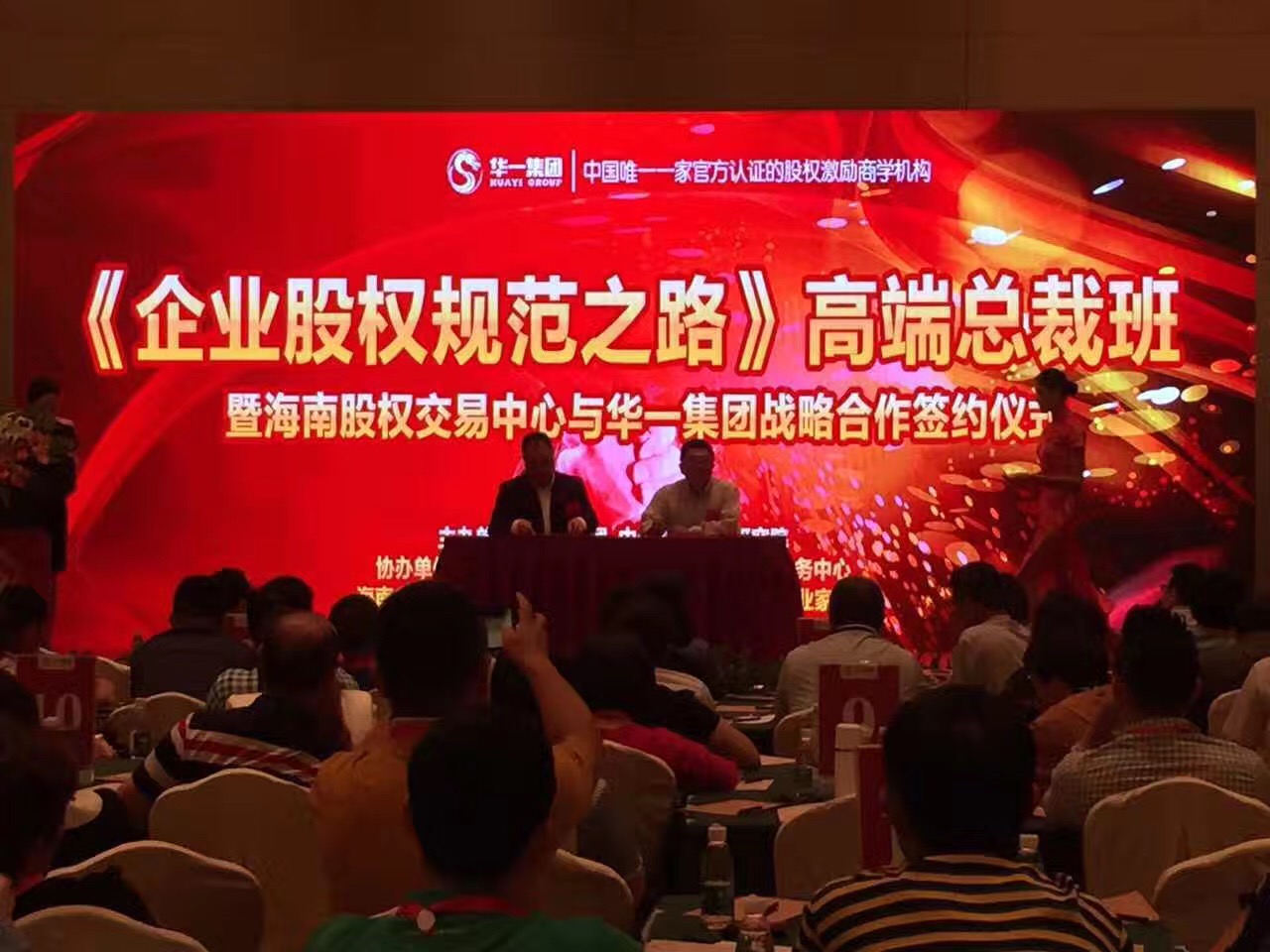 培訓(xùn)現(xiàn)場,海南股權(quán)交易中心與華一集團(tuán)簽訂戰(zhàn)略合作協(xié)議,旨在進(jìn)一步發(fā)揮服務(wù)功能,積極開展公司治理、股權(quán)激勵(lì)、股權(quán)投資、商業(yè)策劃、上市輔導(dǎo)、兼并重組等專業(yè)培訓(xùn)服務(wù),為掛牌企業(yè)搭建融投資以及商務(wù)交流平臺,讓掛牌企業(yè)切實(shí)獲得實(shí)惠。