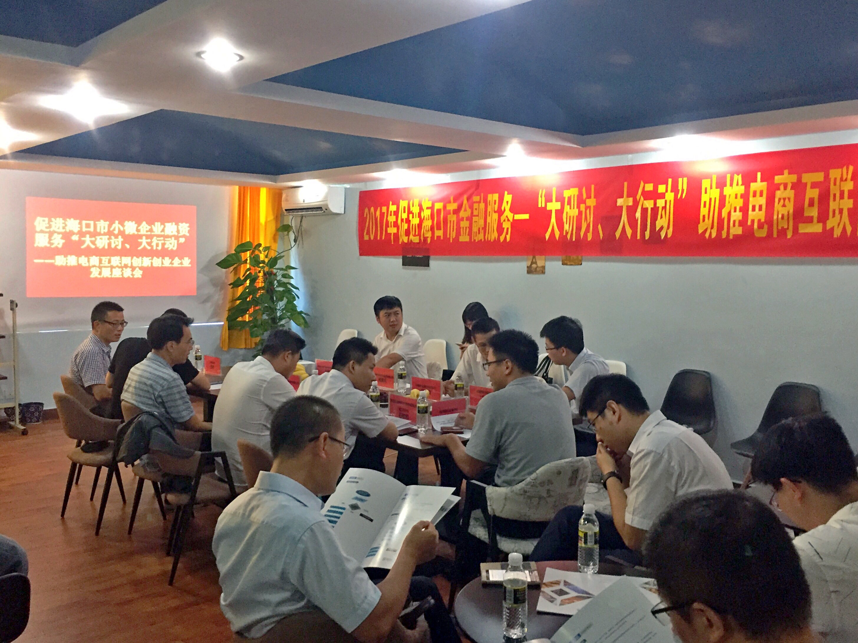 本次2017年促進(jìn)海口市金融服務(wù)—“大研討、大行動”助推電商互聯(lián)網(wǎng)創(chuàng)新創(chuàng)業(yè)企業(yè)發(fā)展座談會活動,由??谑猩虅?wù)局及??谑锌乒ば啪致?lián)合指導(dǎo),??谑兄行∑髽I(yè)公共服務(wù)平臺主辦,海南青創(chuàng)投資管理有限公司承辦,海南股權(quán)交易中心協(xié)辦?;顒又荚谏疃韧诰螂娮由虅?wù)、互聯(lián)網(wǎng)創(chuàng)新創(chuàng)業(yè)企業(yè)實際需求,推動金融資源要素更多向電商互聯(lián)網(wǎng)企業(yè)配置,幫助互聯(lián)網(wǎng)創(chuàng)新創(chuàng)業(yè)企業(yè)克服融資困難,滿足企業(yè)金融需求,促進(jìn)中小微企業(yè)發(fā)展。