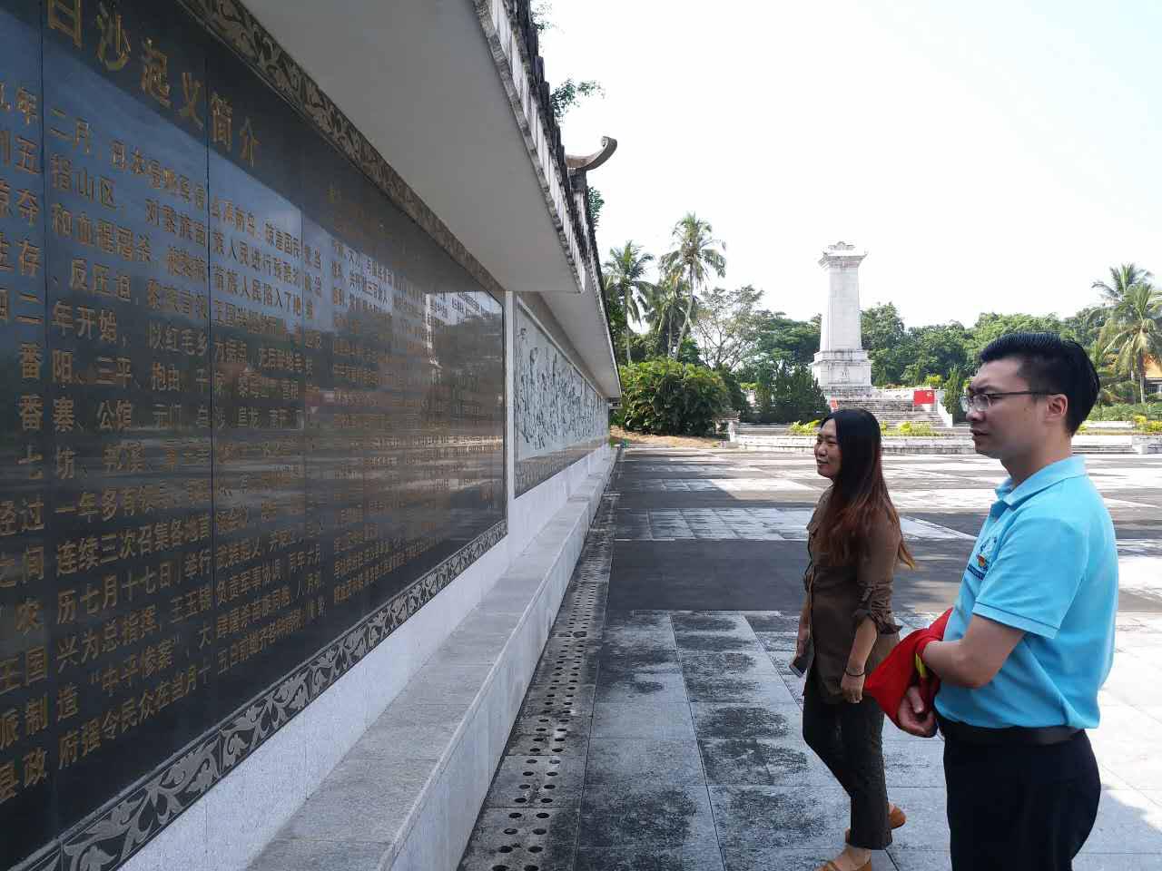 在參觀過程中,黨員們駐足觀看,回顧起義的光榮歷史,緬懷先烈們的豐功偉績。一件件先烈的遺物、一幅幅珍貴的照片、一篇篇詳實的史料,再現(xiàn)當(dāng)年白沙起義革命前輩們英勇奮戰(zhàn)的場景,彰顯出海南黎族苗族人民在艱苦的條件下對革命事業(yè)的無限忠誠和為革命鞠躬盡瘁、死而后己的崇高品質(zhì)。隨后,在莊嚴(yán)的革命先烈碑前,黨員們懷著無比崇敬的心情在烈士碑前重溫入黨誓詞。