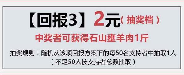 此次“石山壅羊”眾籌項(xiàng)目提供三種回報(bào)方案,其中回報(bào)方案三為“抽獎(jiǎng)檔”,根據(jù)方案,隨機(jī)從此回報(bào)方案下抽取獲獎(jiǎng)?wù)撸@獎(jiǎng)名單如下: