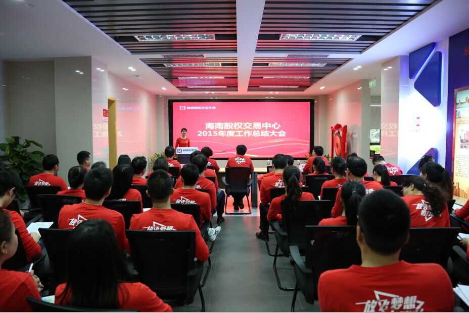 1月7日下午,新年伊始,海南股權(quán)交易中心在海南老城經(jīng)濟開發(fā)區(qū)海南生態(tài)軟件園B13號樓召開了2015年度工作總結(jié)會議。會議對2015年度工作進(jìn)行總結(jié),并對2016年工作做了規(guī)劃,股交中心董事長李曉剛,總裁班淼琦,副總裁吳惠玉、陸瑋、程棟才,以及股交中心海南、北京、上海、深圳四地的全體員工參加了本次會議。