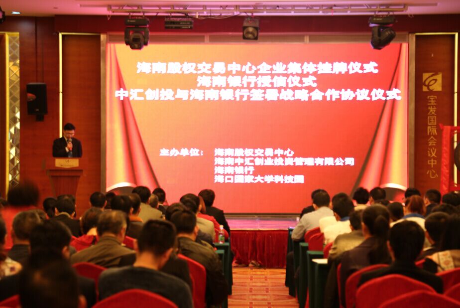 1月15日,海南股權(quán)交易中心企業(yè)集體掛牌暨銀行授信簽約儀式,在海口寶發(fā)幸福酒店舉行。本次活動由海南股權(quán)交易中心、海南中匯創(chuàng)業(yè)投資管理有限公司、海南銀行、海口國家大學科技園聯(lián)合主辦。37家企業(yè)現(xiàn)場集體掛牌海南股權(quán)交易中心,其中12家企業(yè)獲得海南銀行合計額度2100萬元的授信。