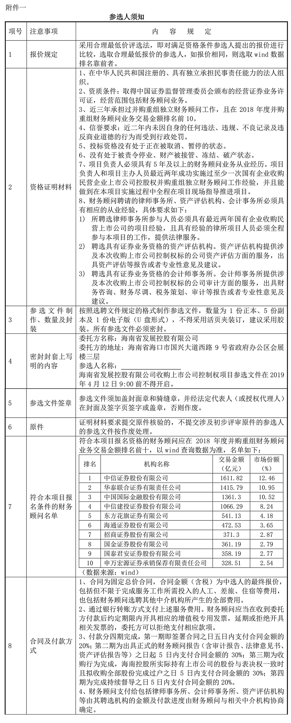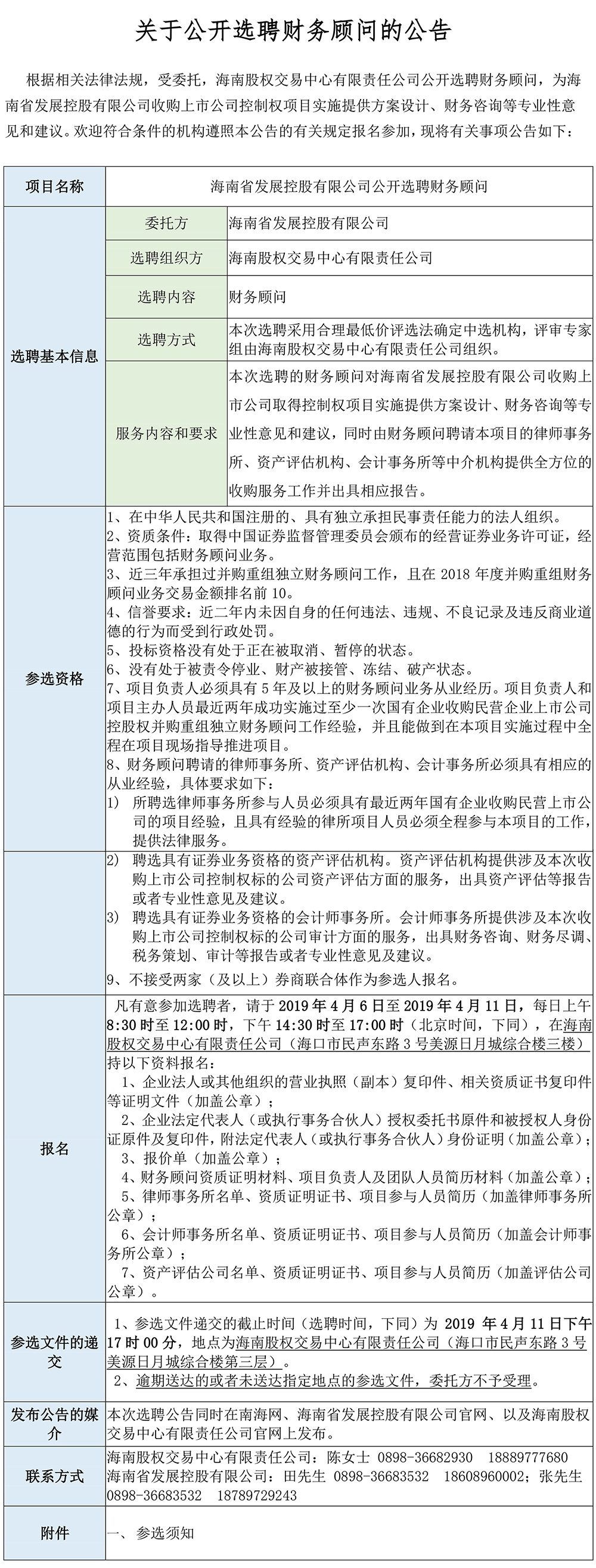 【公開選聘】海南省發(fā)展控股有限公司公開選聘財務顧問