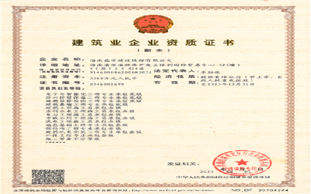 | 企業(yè)說明: | 海南盛華建設(shè)股份有限公司(1992年成立),原名:海南盛華消防工程 有限公司,2014年2月經(jīng)海南省建設(shè)廳審定為建筑業(yè)企業(yè)資質(zhì)證書消防設(shè)施工程 專業(yè)承包一級企業(yè)資質(zhì),注冊資金叁仟叁佰捌拾萬元,并增項(xiàng)房建、市政、機(jī) 電、智能化、環(huán)保等資質(zhì),公司將逐步發(fā)展為綜合性、多元化現(xiàn)代建筑企業(yè)。 |