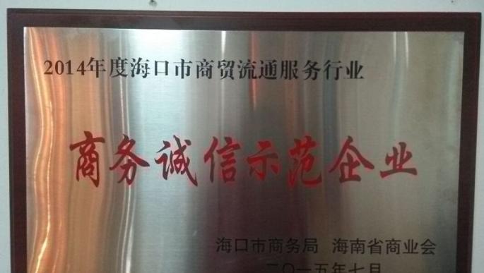 十、2015年7月被??谑猩虅站?、海南省商業(yè)會評為2014年度??谑猩藤Q(mào)流通服務行業(yè)商務誠信示范企業(yè)。
