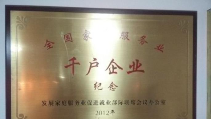 七、2012年、2015年連續(xù)兩年被中國人力資源和社會保障部評為全國家庭服務業(yè)千戶企業(yè)。