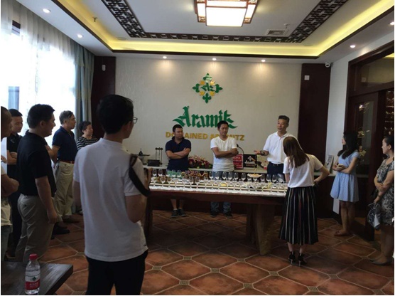 海南的午后,烈日當(dāng)空,天氣炎熱,但絲毫沒有影響參與活動(dòng)的股交中心各掛牌企業(yè)高管們的熱情。14:30,“品紅酒,學(xué)知識(shí)”交流活動(dòng)在藍(lán)赫名爵酒莊正式開始。大家饒有興趣地聽藍(lán)赫名爵酒莊的羅青總經(jīng)理介紹了紅酒的特性及文化。隨后羅青總經(jīng)理就4種具有代表性的紅酒進(jìn)行了詳細(xì)的介紹,各企業(yè)的高管們對(duì)不同的紅酒進(jìn)行了品鑒。