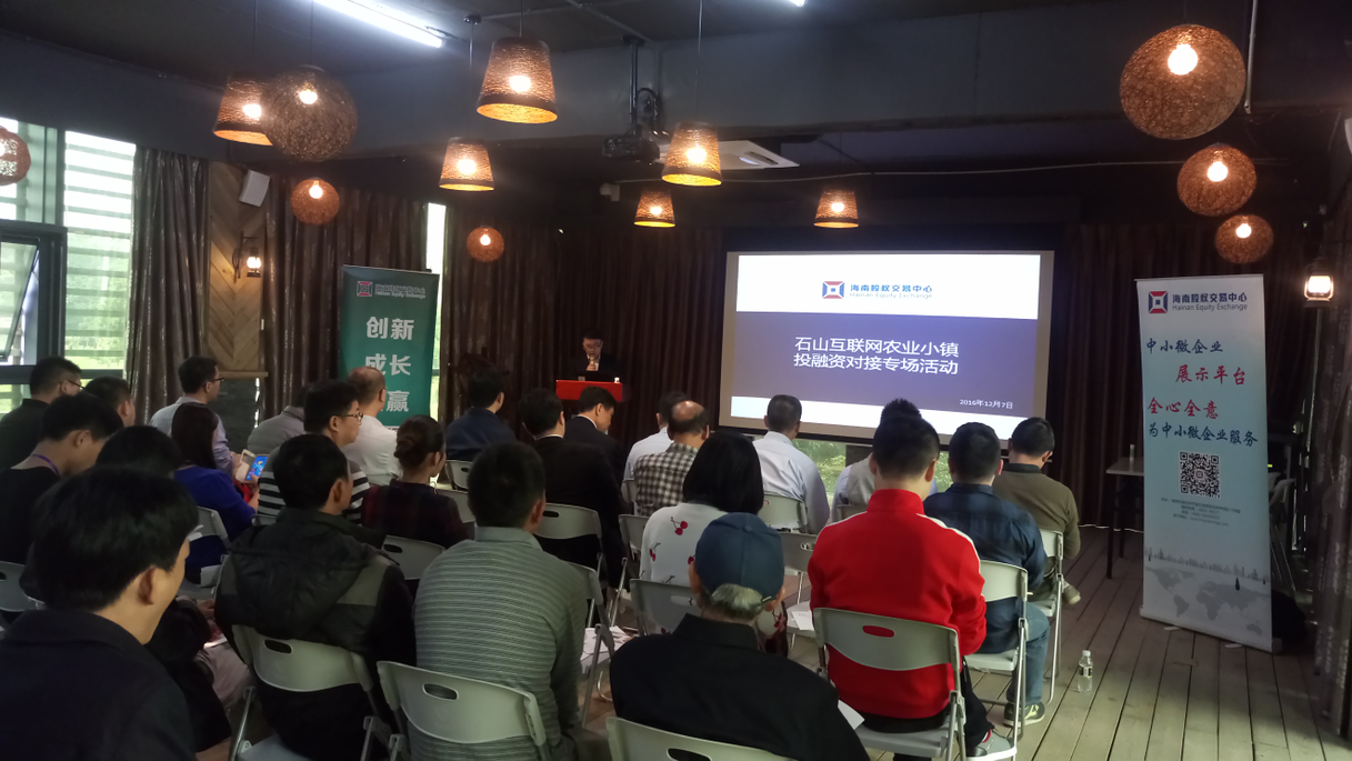 12月7日,石山互聯(lián)網(wǎng)農(nóng)業(yè)小鎮(zhèn)投融資對接專場活動在石山互聯(lián)網(wǎng)農(nóng)業(yè)小鎮(zhèn)運營中心成功舉行。此次對接會由石山鎮(zhèn)人民政府主辦,海南股權(quán)交易中心、石山互聯(lián)網(wǎng)農(nóng)業(yè)小鎮(zhèn)運營中心共同承辦。中共海口市秀英區(qū)委常委、石山鎮(zhèn)委書記胡余亨,海口市秀英區(qū)石山鎮(zhèn)人民政府副鎮(zhèn)長胡煒彬,海南股權(quán)交易中心副總裁許博、投資機構(gòu)、石山鎮(zhèn)企業(yè)代表及合作社參加了本次活動。