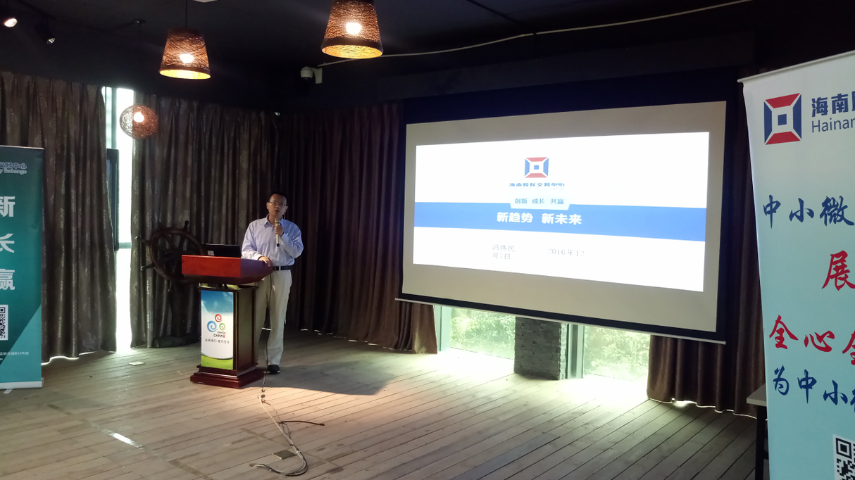 現(xiàn)場,海南股權(quán)交易中心作了企業(yè)對接資本市場專題培訓。海南股權(quán)交易中心培訓總監(jiān)馮偉民講解了資本市場的發(fā)展,詳細分析了國內(nèi)多層次資本市場體系,并就中心近期開展的培訓、咨詢、路演、企業(yè)家沙龍、眾籌等工作作了深入的介紹。